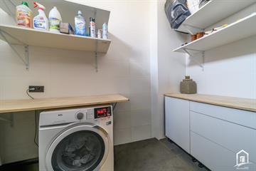 Deze unieke loftwoning in Aalst bevindt zich op een gunstige locatie nabij het centrum en het stadspark en combineert karakter met hedendaags comfort. De woning werd volledig gerenoveerd met behoud en opfrissing van de rustieke balken, wat zorgt voor een warme en authentieke uitstraling. Op het gelijkvloers bevindt zich een inpandige garage met een hoogte van 3,43 m, een multifunctionele bureauruimte die ook kan dienen als logeer- of stockageruimte, een ingerichte badkamer met inloopdouche, toilet en lavabo, evenals een aparte berging en wasplaats. De eerste verdieping omvat een ruime leefruimte met open keuken en eetplaats, afgewerkt met hoogwaardige materialen en voorzien van domotica voor licht- en geluidsinstallatie. Maatwerk zoals een ingemaakte vestiairekast en een stijlvolle tv- en barkastenwand met gasvuur versterken het loftkarakter. De volledig uitgeruste keuken beschikt over kwalitatieve Bosch- en Bauknecht toestellen. Waaronder een stoomoven, wijnkoeler, koelkast, grill, kookplaat en vaatwasmachine. Op de tweede verdieping bevindt zich een luxueuze slaapkamer met vrijstaand ligbad, ingemaakte haard en tv-wand, aansluitend een badkamer met inloopdouche, toilet en lavabo in fineereik meubel en een op maat gemaakte dressing. Dankzij duurzame materialen, nieuwe ramen, een nieuw dak en extra isolatie behaalt de woning een gunstig EPC-label C. De elektriciteit is conform en de woning is asbestvrij, wat zorgt voor een instapklare woonervaring met een hoogwaardige afwerking. Contacteer Tess op 0468/14 50 67, om uw bezoek in te plannen.